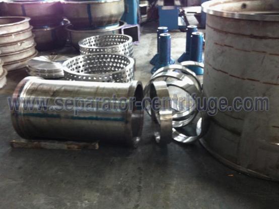 2.The mixture to be separated is fed through the feeding pipe and the distributor continuously and evenly into the first stage basket.